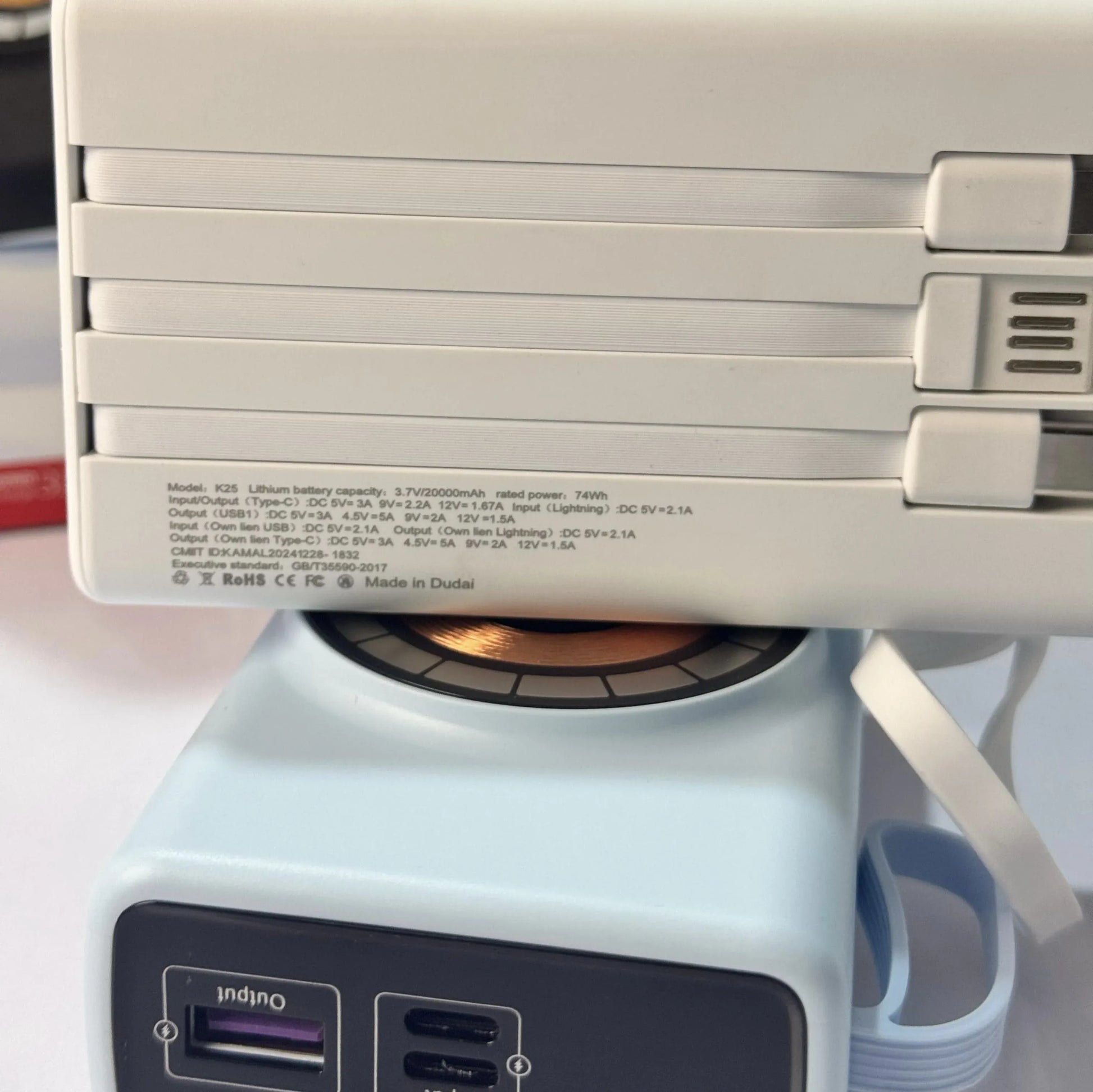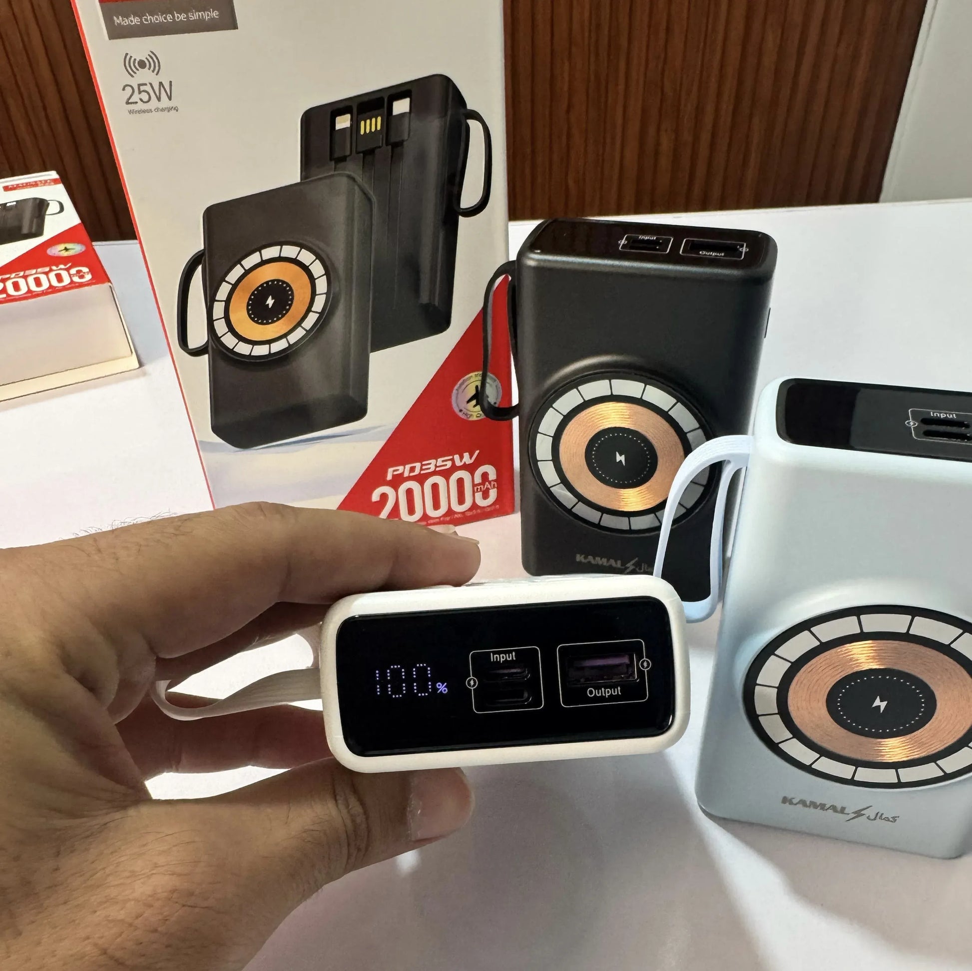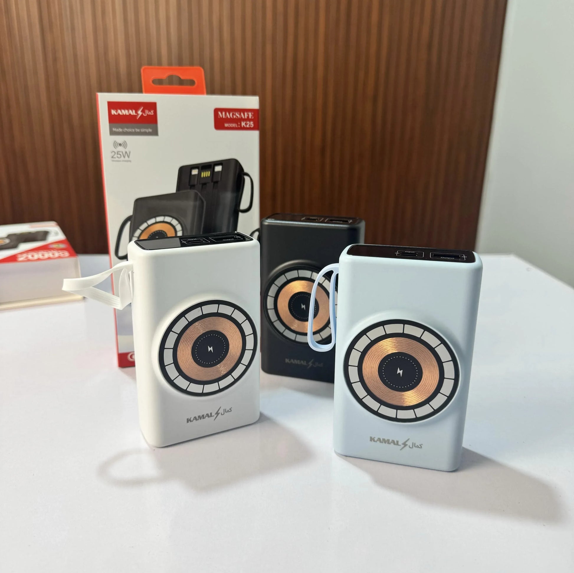 Meet the Kamal K25, the all-in-one powerhouse built for modern charging needs. With a massive 20000mAh lithium battery, it supports both 65W Quick Charge 3.0 wired output and 25W wireless MagSafe charging β ideal for smartphones, tablets, and more.