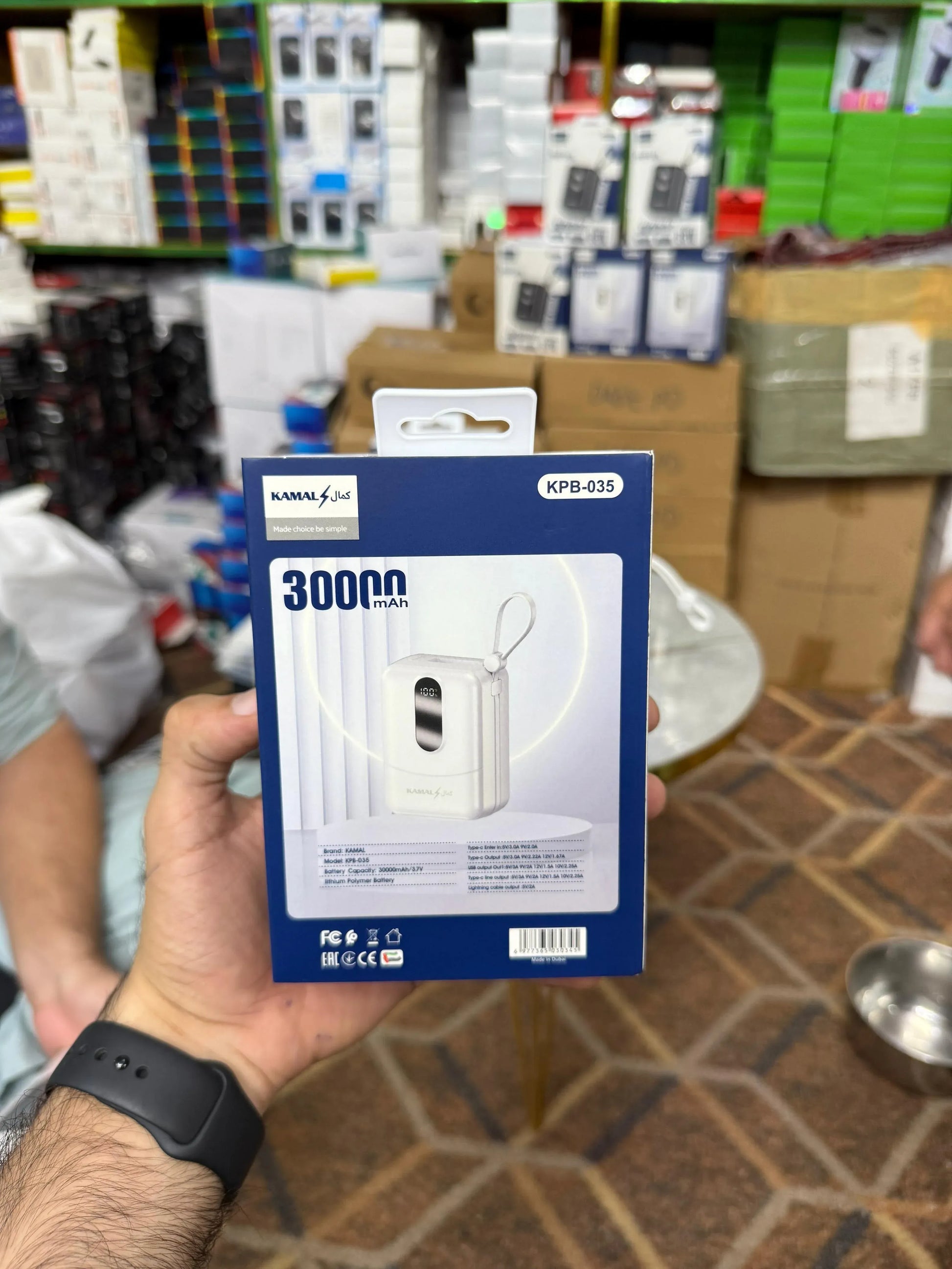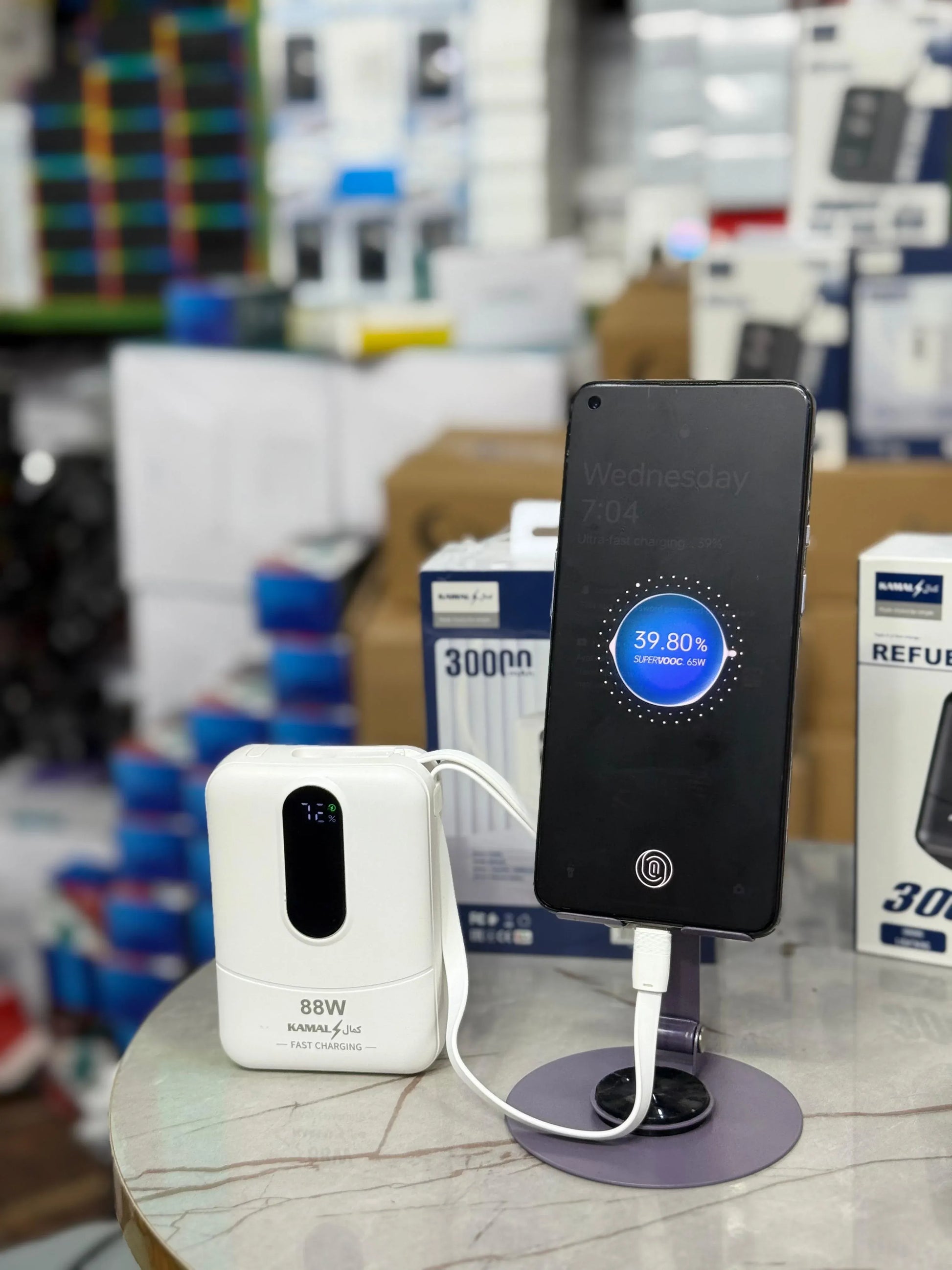 KAMAL Mini Power Bank 88W Fast Charging – 20,000mAh / 30,000mAh (LED % Display, Built-in Cable)